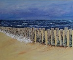 2021Strand en zee met strandpalen geschilderd met acryl