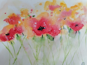 2023Klaprozen geschilderd met aqaurel op papier.