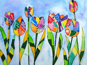 2023Tulpen geschilderd in diverse kleuren en vlakjes.